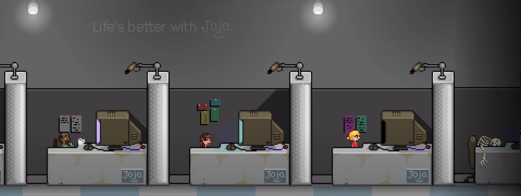 Production for this game was very fun and memorable, especially since this was the very first game I worked on where I had a dedicated artist on the team! In the beginning there was a few hiccups in the production since I didn’t fully understand how long it actually takes an artist to draw stuff. While designing the game I originally envisioned a title screen that depicts an office worker wasting away inside his cubicle. This title screen would’ve been very reminiscent of the opening scene from Stardew Valley, but with a lot of animated pieces like a ceiling fan and smoke from a cigar.